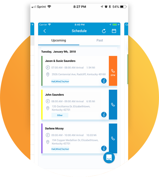 Text messages are sent to the insured automatically, making first contact in seconds and allowing the customer to confirm their information while scheduling a date and time. Your schedule, routes, and contact notes are updated on the fly based on your preferences. All while you’re taking a nap.